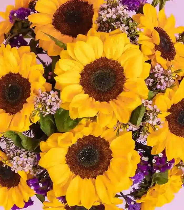 Precioso arreglo de 10 a 12 girasoles en una linda caja